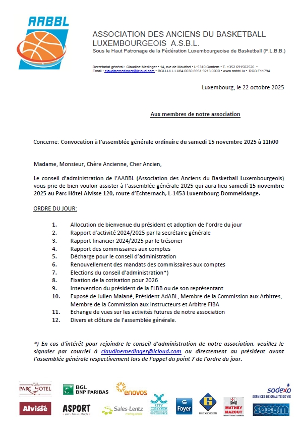 11h00 Assemblée générale ordinaire